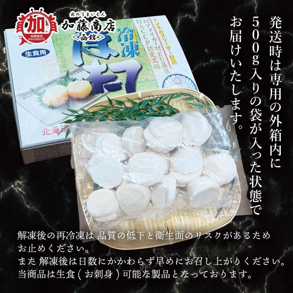 「北海道産 生食可!お刺身用ほたて貝柱」なんです。
