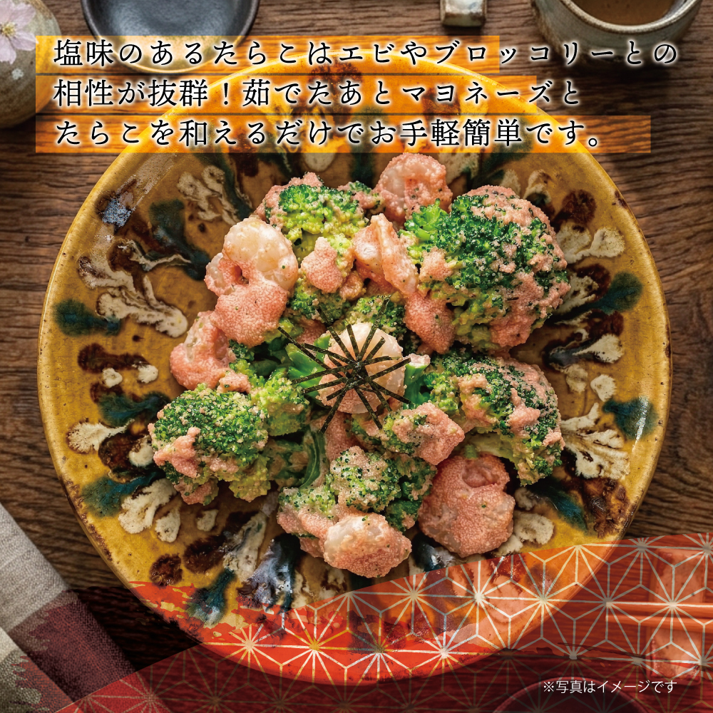 新鮮なスケソウダラの卵を厳選し、贈答向けの1本物用たらこの製造工程で皮が破れてしまった「切れ子」や、最初からほぐれている「バラコ」のみをたっぷりと集めているからこそ実現できた特別パッケージなのです。