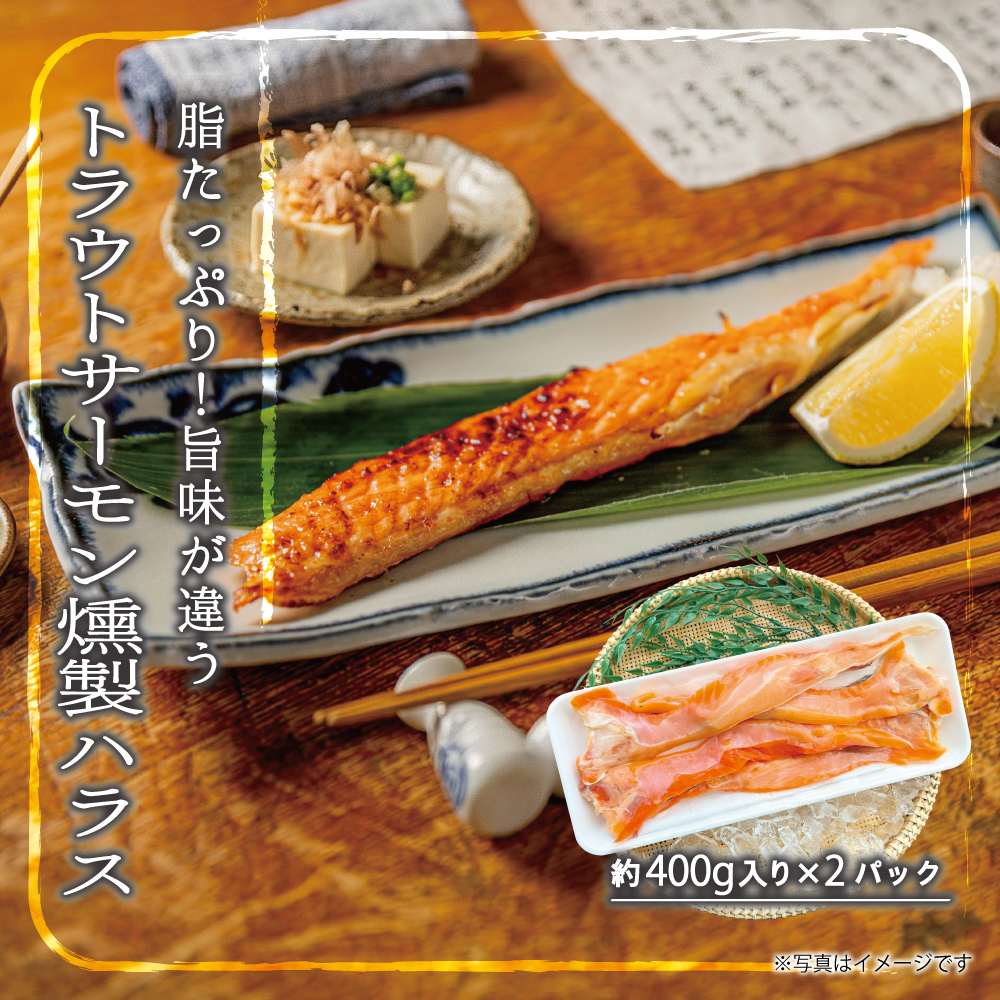 原材料名:サーモントラウト(チリ)、食塩、コショウ/ソルビトール、調味料(有機酸等)、酸化防止剤(V.C)、(一部にさけを含む)