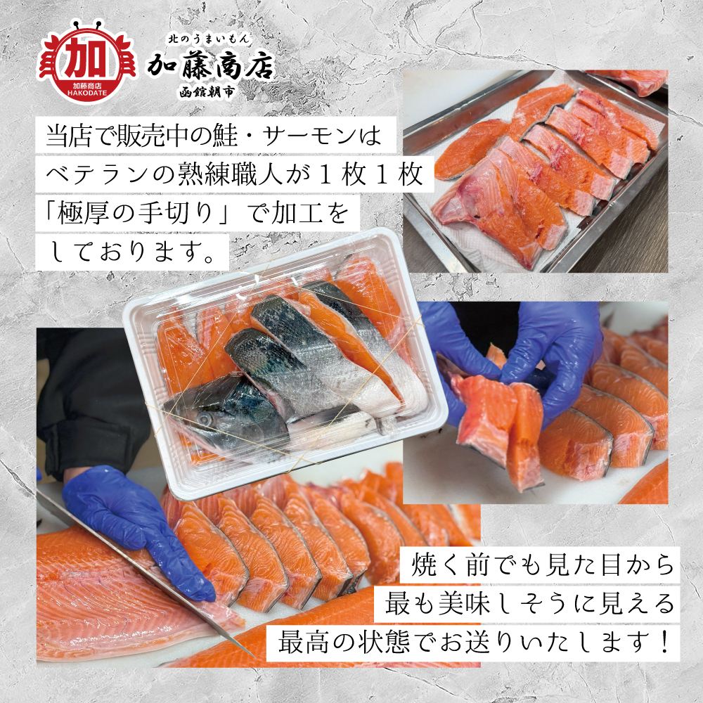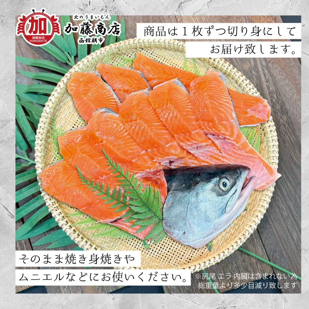 内容量:1尾(約2~2.5kg)の鮭を切り身にしています